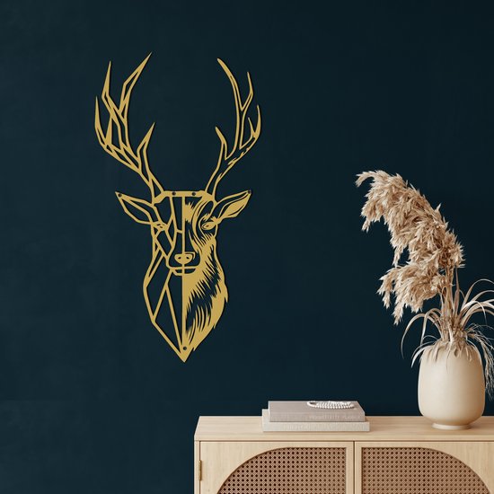Décoration murale |Décor géométrique de Head de Deer | Métal - Art mural | Décoration murale | Salle de séjour |d'or| 46x75cm