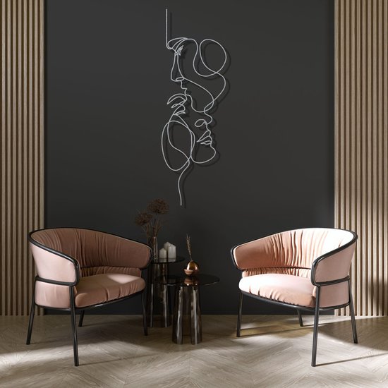 Décoration murale | Deux visages / Deux Face | Métal - Art mural | Décoration murale | Salle de séjour |Argent| 25x75cm
