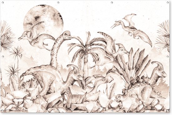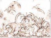 Décoration murale Dino - Enfants - Jungle - Plantes - Kids - 180x120 cm - Poster jardin - Toile jardin - Poster extérieur