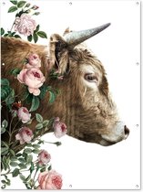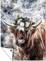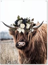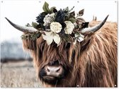 Décoration murale extérieur Highlander écossais - Fleurs - Vache - 160x120 cm