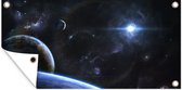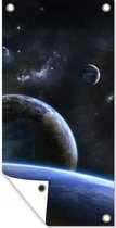 Décoration murale extérieur l'espace rempli de planètes - 160x80 cm - Toile jardin - Affiche extérieure