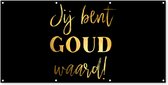 Décoration murale extérieur Tu vaux de l'or - Fête des mères - Belle-mère - Or - Citations - 160x80 cm - Toile de jardin - Affiche extérieure