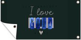 Les Posters de jardin, également appelées toiles de jardin, sont des affiches spécialement conçues pour être accrochées à l'extérieur. Cette nappe de jardin peut donc prendre une raclée. La voile Bisonyl a été utilisée pour cette affiche extérieure. Cette voile est une bâche enduite avec une belle finition. L'affiche de jardin est résistante aux UV, elle ne se décolore donc pas au soleil. Plusieurs anneaux ont été placés dans la toile pour que vous puissiez facilement l'accrocher! Jusqu'à une taille de 120x80 cm, les anneaux sont dans les coins, avec des tailles plus grandes, les anneaux viennent tous les 60 cm. Le tissu peut résister aux différentes conditions météorologiques et durera au moins 3 ans.