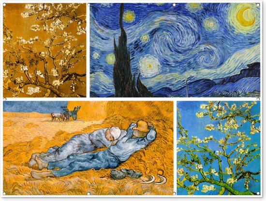 Décoration murale extérieur Van Gogh - Collage - Art - 160x120 cm - Toile jardin - Affiche extérieure