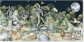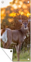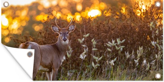 Décoration murale extérieure Cerf - Plantes - Coucher de soleil - Animaux sauvages - Nature - 160x80 cm - Toile jardin - Poster extérieur