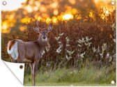 Tableau de jardin - Cerf - Plantes - Coucher de soleil - Animaux sauvages - Nature - Posters de jardin extérieur