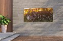Les Posters de jardin, également appelées toiles de jardin, sont des affiches spécialement conçues pour être accrochées à l'extérieur. Cette nappe de jardin peut donc prendre une raclée. La voile Bisonyl a été utilisée pour cette affiche extérieure. Cette voile est une bâche enduite avec une belle finition. L'affiche de jardin est résistante aux UV, elle ne se décolore donc pas au soleil. Plusieurs anneaux ont été placés dans la toile pour que vous puissiez facilement l'accrocher! Jusqu'à une taille de 120x80 cm, les anneaux sont dans les coins, avec des tailles plus grandes, les anneaux viennent tous les 60 cm. Le tissu peut résister aux différentes conditions météorologiques et durera au moins 3 ans.
