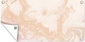 Les Posters de jardin, également appelées toiles de jardin, sont des affiches spécialement conçues pour être accrochées à l'extérieur. Cette nappe de jardin peut donc prendre une raclée. La voile Bisonyl a été utilisée pour cette affiche extérieure. Cette voile est une bâche enduite avec une belle finition. L'affiche de jardin est résistante aux UV, elle ne se décolore donc pas au soleil. Plusieurs anneaux ont été placés dans la toile pour que vous puissiez facilement l'accrocher! Jusqu'à une taille de 120x80 cm, les anneaux sont dans les coins, avec des tailles plus grandes, les anneaux viennent tous les 60 cm. Le tissu peut résister aux différentes conditions météorologiques et durera au moins 3 ans.