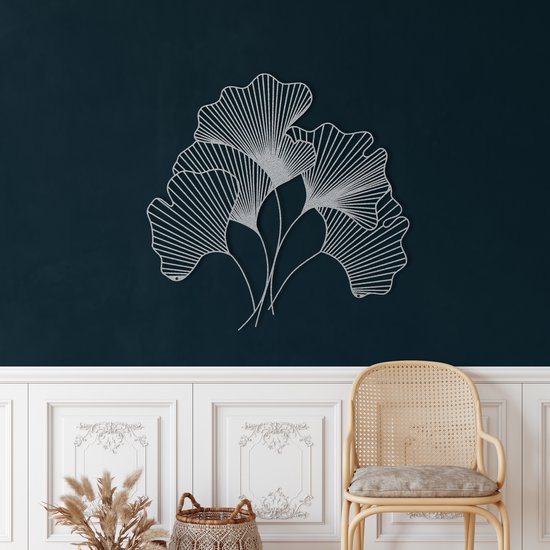 Décoration murale |Feuille / Feuille | Métal - Art mural | Décoration murale | Salle de séjour | Decor extérieur |Argent| 60x58cm