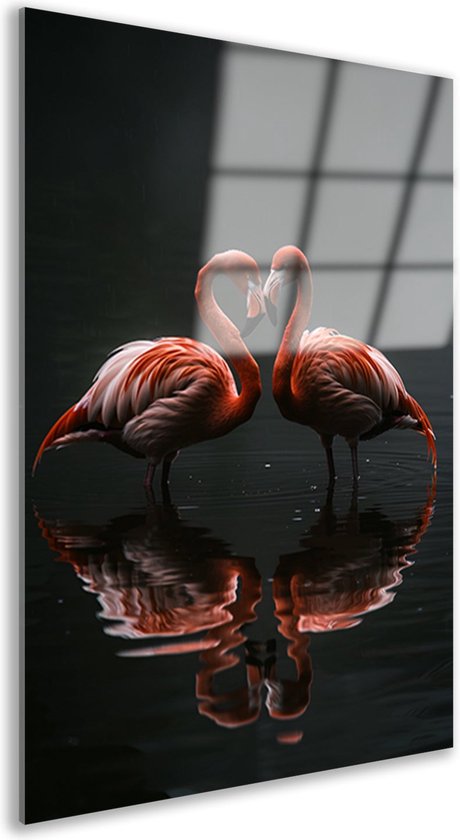 Décoration murale Flamants roses - Peinture sur verre Animaux - Peinture sur Glas Réflexion - Tableaux Classique - Peintures sur plexiglas - Décoration chambre verre acrylique 100x150 cm