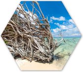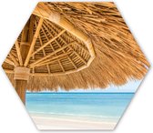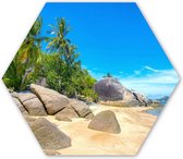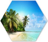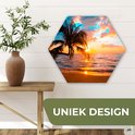 Décoration murale Hexagone - Décoration murale en plastique - Tableau Hexagone - Palmier - Coucher de soleil - Horizon - Plage - Mer - Tropical - 75x65 cm