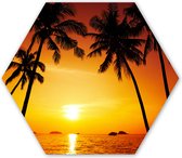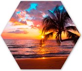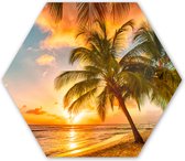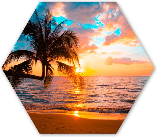 Tableau Hexagone Palmier - Coucher de Soleil - Horizon - Plage - Mer - Tropical Décoration murale Hexagone