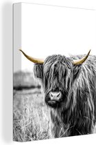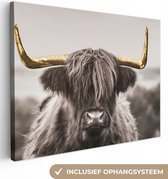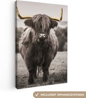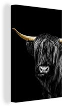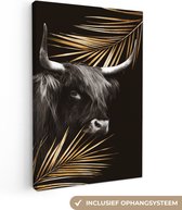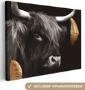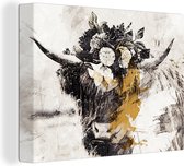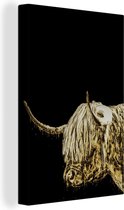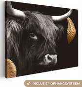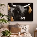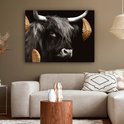 Décoration murale - Highlander écossais - Feuilles - Noir & Or - Peinture sur Toile - 120x90 cm