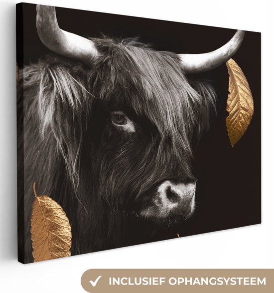 Tableaux sur toile - Highlander écossais - Feuilles - Noir & or - Salon - Chambre
