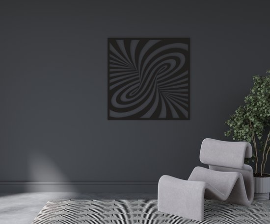Décoration murale illusion d'optique. Élégamment conçu et découpé au laser dans notre eigen fabriek . Disponible en standard dans deux types de matériaux et trois tailles. Peut être commandé en MDF entièrement noir et contreplaqué de bouleau avec bord coupé foncé. Vous pouvez accrocher l'illusion d'optique avec des pastilles adhésives ou un clou (non inclus). Si vous cherchez quelque chose de différent, n'oubliez pas de consulter nos autres produits.