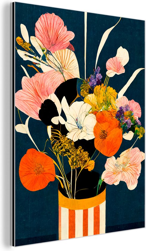 Décoration murale Métal - Aluminium Peinture Industriel - Fleurs - Vase - Tableau - Plantes - 30x40 cm - Dibond - Photo sur aluminium - Décoration murale industrielle - Pour le salon/chambre
