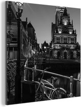Décoration murale Métal - Aluminium Peinture Industrielle - Alkmaar - Canal - Zwart - Wit - 90x90 cm - Dibond - Photo sur aluminium - Décoration murale industrielle - Pour le salon / chambre