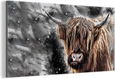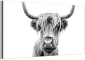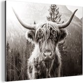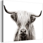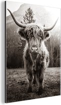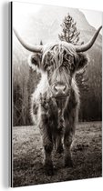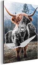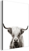 Décoration murale Métal - Aluminium Peinture Industrielle - Highlander écossais - Animaux - Zwart - Wit - 40x80 cm - Dibond - Photo sur aluminium - Décoration murale industrielle - Pour le salon / chambre