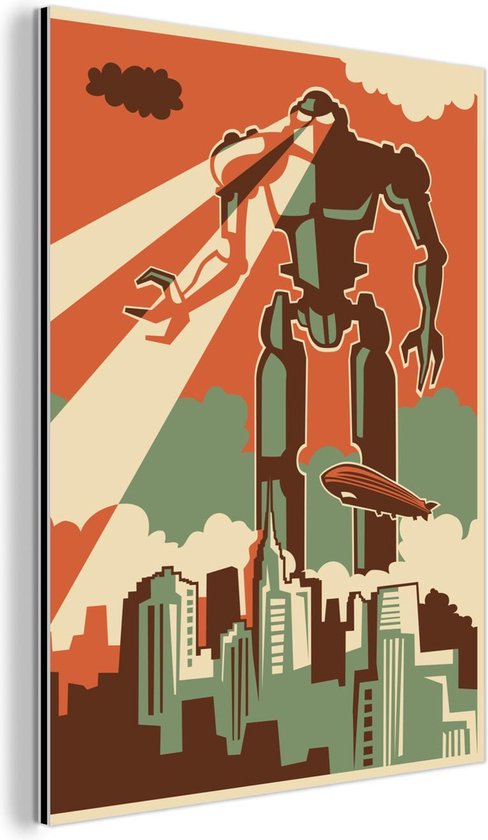 Décoration murale Métal - Aluminium Peinture Industrielle - Robot - Vintage - Dessin - 60x80 cm - Dibond - Photo sur aluminium - Décoration murale industrielle - Pour le salon / chambre