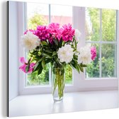 Décoration murale Métal - Aluminium Peinture Industrielle - Vase - Nature morte - Fleurs - 80x60 cm - Dibond - Photo sur aluminium - Décoration murale industrielle - Pour le salon / chambre