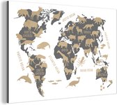 Décoration murale Métal - Peinture Aluminium - Carte du Wereldkaart - Formes - Nuances de Gris - 40x20 cm