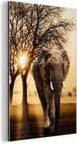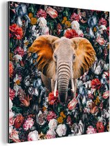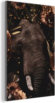 Décoration murale Métal - Peinture Aluminium - Éléphant - Fleurs - Illustration - 80x120 cm - Dibond