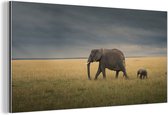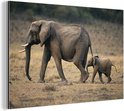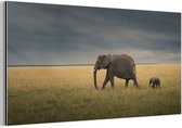 Décoration murale Métal - Peinture Aluminium - Enfant courant après maman éléphant - 120x80 cm