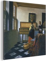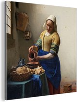 Décoration murale Métal - Peinture Aluminium - Femme lisant une lettre en bleu - Peinture de Johannes Vermeer - 20x20 cm - Dibond