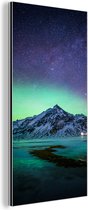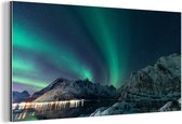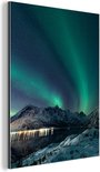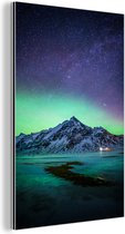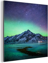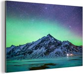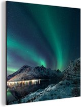 Décoration murale Métal - Peinture Aluminium Industriel - Aurores boréales - Berg - Neige - Vert - Ciel étoilé - Hiver - 60x80 cm - Dibond - Photo sur aluminium - Décoration murale industrielle - Pour le salon/chambre