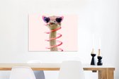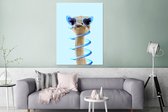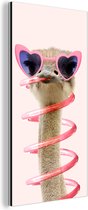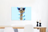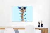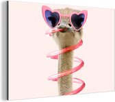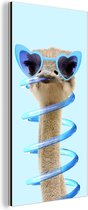 Décoration murale Métal - Peinture Aluminium Industriel - Autruche - Lunettes de soleil - Blauw - Animaux - 80x60 cm - Dibond - Photo sur aluminium - Décoration murale industrielle - Pour le salon/chambre