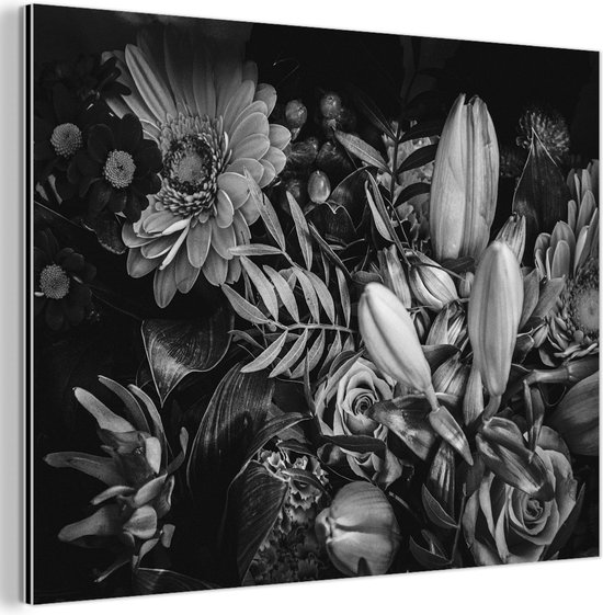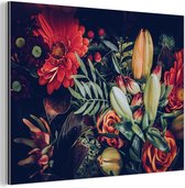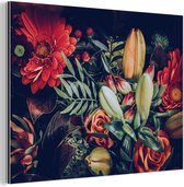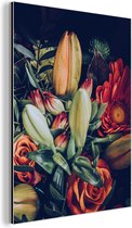 Décoration murale Métal - Peinture Aluminium Industriel - Bouquet - Nature morte - Fleurs - Plantes - Rouge - 80x60 cm - Dibond - Photo sur aluminium - Décoration murale industrielle - Pour le salon/chambre