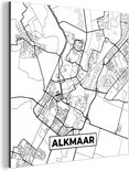 Décoration murale Métal - Peinture Aluminium Industriel - Carte - Alkmaar - Zwart - Wit - 50x50 cm - Dibond - Photo sur aluminium - Décoration murale industrielle - Pour le salon/chambre