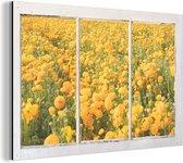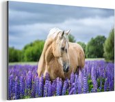 Décoration murale Métal - Peinture Aluminium Industriel - Cheval - Fleurs - Jaune - 60x40 cm - Dibond - Photo sur aluminium - Décoration murale industrielle - Pour le salon/chambre