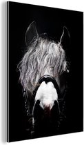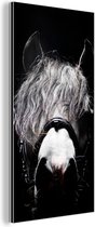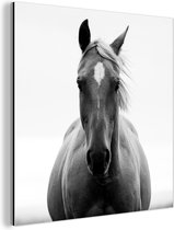Décoration murale Métal - Peinture Aluminium Industriel - Cheval - Zwart - Wit - Portrait - 90x60 cm - Dibond - Photo sur aluminium - Décoration murale industrielle - Pour le salon/chambre