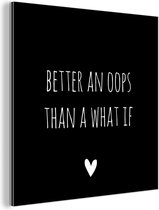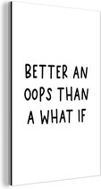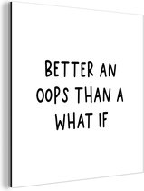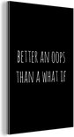 Sur cette image, la citation anglaise Better an oops than a what if est écrite en lettres blanches sur fond noir.