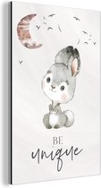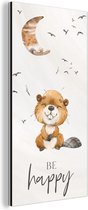Décoration murale Métal - Peinture Aluminium Industriel - Citations - Be happy - Enfants - Lune - Castor - Aquarelle - 40x60 cm - Dibond - Photo sur aluminium - Décoration murale industrielle - Pour le salon/chambre
