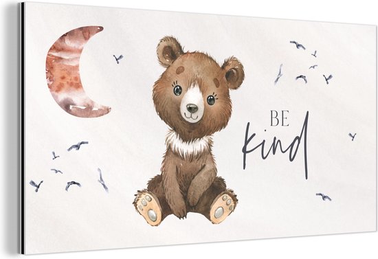 Décoration murale Métal - Peinture Aluminium Industriel - Dictons - Be kind - Enfants - Ours en peluche - Aquarelle - 120x60 cm - Dibond - Photo sur aluminium - Décoration murale industrielle - Pour le salon/chambre