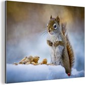 Décoration murale Métal - Peinture Aluminium Industriel - Écureuil - Noix - Neige - Hiver - Rongeurs - Saisons - 160x80 cm - Dibond - Photo sur aluminium - Décoration murale industrielle - Pour le salon/chambre