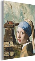 Décoration murale Métal - Peinture Aluminium Industriel - Fille à la boucle d'oreille en perle - Johannes Vermeer - Moulin - 100x150 cm - Dibond - Photo sur aluminium - Décoration murale industrielle - Pour le salon/chambre