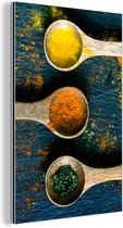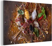 Décoration murale Métal - Peinture Aluminium Industriel - Herbes - Ton - Épices - Jaune - Marron - 90x90 cm - Dibond - Photo sur aluminium - Décoration murale industrielle - Pour le salon/chambre