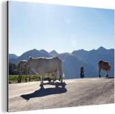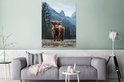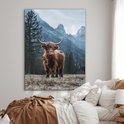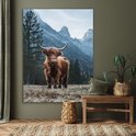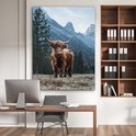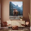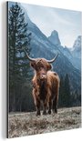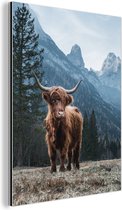 Décoration murale Métal - Peinture Aluminium Industriel - Highlander Ecossais - Berg - Paysage - Arbres - Vache - Nature - 120x160 cm - Dibond - Photo sur aluminium - Décoration murale industrielle - Pour le salon/chambre
