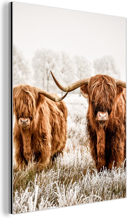 Décoration murale Métal - Peinture Aluminium Industriel - Highlander Ecossais - Vache - Animaux - 60x80 cm - Dibond - Photo sur aluminium - Décoration murale industrielle - Pour le salon/chambre