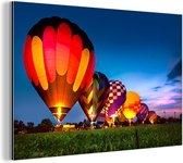 Ballons à air chaud colorés d'affilée avec un ciel coloré Aluminium 30x20 cm - petit - Tirage photo sur aluminium (décoration murale métal)