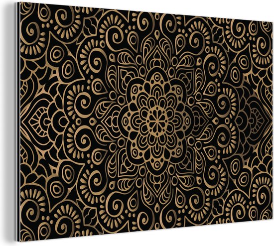 Décoration murale Métal - Peinture Aluminium Industriel - Motif doré sur fond noir - 150x100 cm - Dibond - Photo sur aluminium - Décoration murale industrielle - Pour le salon/chambre