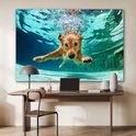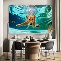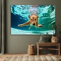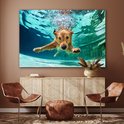 Décoration murale Métal - Peinture Aluminium Industriel - Piscine - Chien - Water - 150x100 cm - Dibond - Photo sur aluminium - Décoration murale industrielle - Pour le salon/chambre