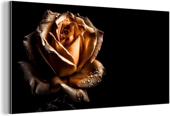Décoration murale Métal - Peinture Aluminium Industriel - Rose - Or - Fleurs - Botanique Zwart - 120x60 cm - Dibond - Photo sur aluminium - Décoration murale industrielle - Pour le salon/chambre