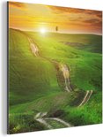 Décoration murale Métal - Peinture Aluminium Industriel - Toscane - Soleil - Collines - 20x20 cm - Dibond - Photo sur aluminium - Décoration murale industrielle - Pour le salon/chambre