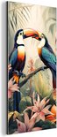 Décoration murale Métal - Peinture Aluminium Industriel - Toucan - Vogels - Fleurs - Nature - Jungle - 20x40 cm - Dibond - Photo sur aluminium - Décoration murale industrielle - Pour le salon/chambre
