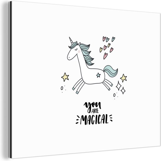 Décoration murale Métal - Peinture Aluminium Industriel - Unicorn - Enfants - Citations - Tu es magique - Filles - 120x90 cm - Dibond - Photo sur aluminium - Décoration murale industrielle - Pour le salon/chambre