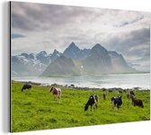 Décoration murale Métal - Peinture Aluminium Industriel - Vache - Brouillard - Soleil - 120x60 cm - Dibond - Photo sur aluminium - Décoration murale industrielle - Pour le salon/chambre